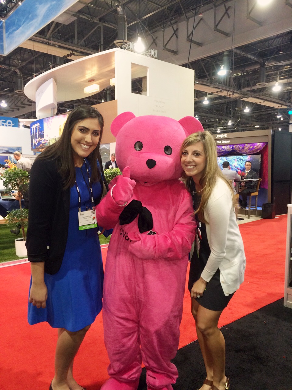 Taylor visiting the DMC Network booth #2227 and our favorite bear, Ovation Bear!